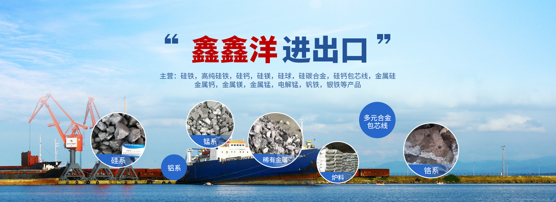中國鑫鑫洋進出口有限公司成立于2023年5月8日,總部位于美麗的塞上江南寧夏銀川市閱海灣中 央商務區,公司隸屬于阿爾巴迪(寧夏)治煉有限公司,主要經營集團公司產品:硅鐵,高純硅鐵,硅鈣,硅鎂,硅球,硅碳合金,硅鈣包芯線,金屬硅,金屬鈣,金屬鎂,金屬錳,電解錳,釩鐵,銀鐵等產品的進出口業務。        中國鑫鑫洋進出口有限公司秉承誠信為根本、市場為導向、質量為生命的經營理念,以“銳意進取”的服務態度為宗旨,您想要的就是我們為您服務的,您的滿意就是我們不懈的追求。